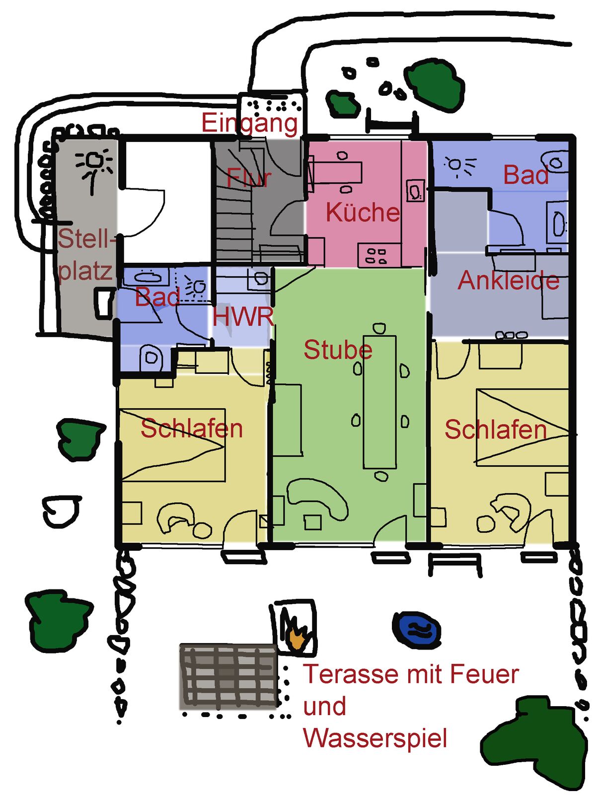 HWR (ca. 8 qm) mit Waschmaschine, Wäschetrockenplatz draußen