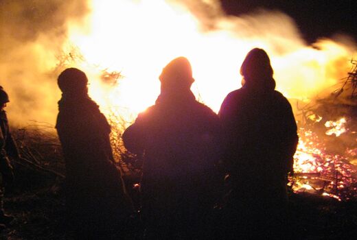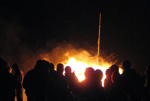 Alle alten Weihnachtsbäume, Gestecke, Strandgut sowie Baum- und Buschabschnitten, die aus der Umgebung gesammelt und aufgetürmt werden.